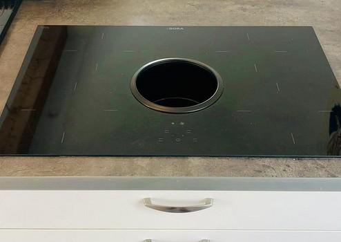 • Einbauküche mit modernen Markengeräten und integriertem Kochfeldabzug (Muldenlüfter) – ideal für offene Räume
