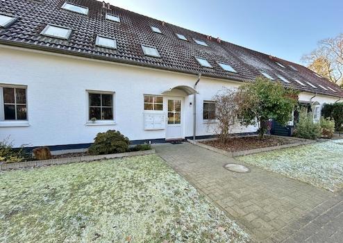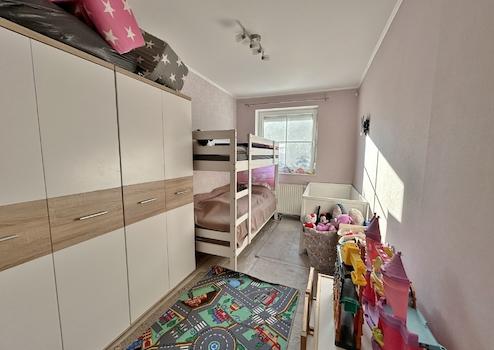 Nach dem Eintreten gelangen Sie in den Flur, von dem aus alle Bereiche der Wohnung bequem erreichbar sind. Das Wohnzimmer bildet den Mittelpunkt und überzeugt durch seine angenehme Größe sowie die große Fensterfront zur Terrasse. Von hier aus öffnet sich der Blick in den eigenen Garten, der viel Platz für entspannte Stunden im Freien bietet. Ein Gartenhaus ergänzt die Außenfläche praktisch, etwa für Geräte, Fahrräder oder saisonale Möbel.