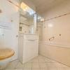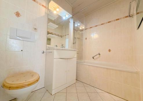 • Bad mit Badewanne, Waschtisch mit Spiegelschrank und WC