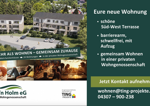 Op'n Holm - 3-Zimmer - Süd-West-Terasse - private Wohngenossenschaft