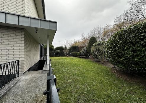 Sie befindet sich in einem wunderschönen Dreiparteienhaus in ruhiger und gepflegter Einfamilienhausbebauung. Es besteht ein exklusiver Zugang zur Wohnung: Rechts entlang der Einfahrt führt ein separater Weg über den Außenbereich, der über Eck verläuft und über eine Treppe, vorbei am Garten, hinunter ins Souterrain bis zum Wohnungseingang führt. Der zugehörige Außenbereich kann beispielsweise für eine Sitzgarnitur mit Tisch und Stühlen genutzt werden und bietet zusätzlichen privaten Freiraum.