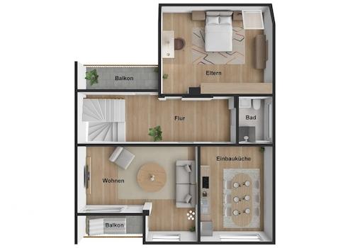 Obergeschosswohnung mit ausgebautem Dachgeschoss: