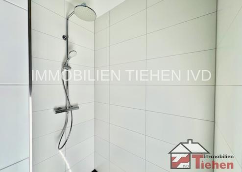 Das moderne Badezimmer ist mit einer stilvollen, ebenerdigen Dusche ausgestattet und präsentiert sich in hochwertiger, zeitgemäßer Ausführung.