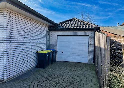 - Walmdachgarage mit elektrischem Tor