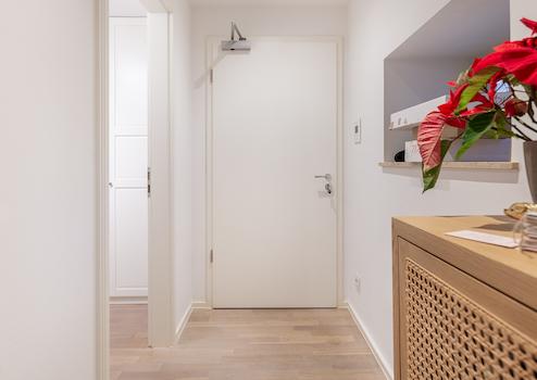 In der gesamten Wohnung befindet sich ein stilvoller Echtholzboden, während das Badezimmer modern gefliest worden ist.