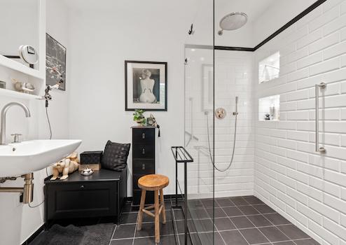 Bad komplett neu mit begehbarer großer Dusche, gemauerter Sitzbank und