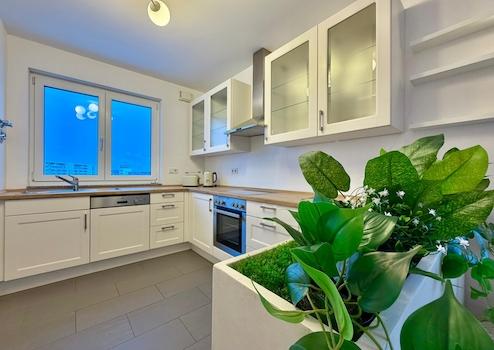 - Einbauküche inkl. Spüle, Spülmaschine, Herd, Backofen und Dunstabzugshaube