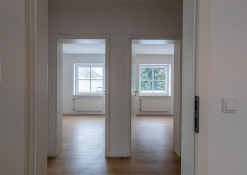 Der zentrale Flur verbindet alle Räume effizient und unterstreicht den klaren, harmonischen Grundriss. Insgesamt präsentiert sich diese Wohnung als ein lichtdurchflutetes, einladendes Zuhause, das Funktionalität und Wohnkomfort ideal vereint – perfekt für Familien oder Paare mit Anspruch an modernes Wohnen.