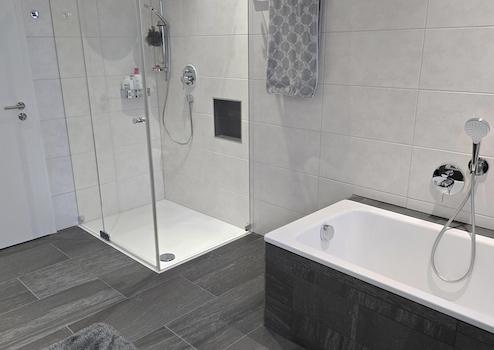 # Hauptbad mit Tageslicht (Wanne und Dusche), ca. 11,72 qm