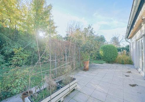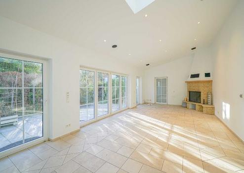 Über die großen, bodentiefen Fenster gelangen Sie auf die Terrasse mit Blick in den schönen Garten.