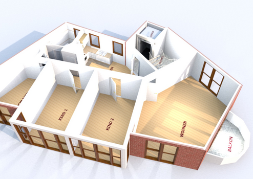 Der individuelle trapezförmigem Grundriss ermöglicht eine optimale Raumausnutzung mit offener Wohn-Essküche, die ggf. auch abgetrennt werden könnte.