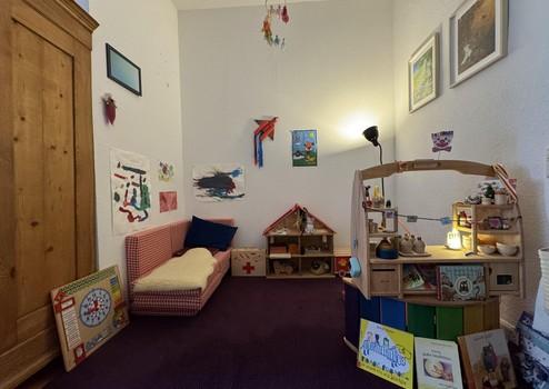 - Das sehr geräumige Schlafzimmer wurde mit einer Trennwand in zwei kleinere Zimmer aufgeteilt. Wenn der Wunsch da sein sollte, kann diese Wand leicht wieder entfernt werden und statt der zwei Räume das geräumige Zimmer wieder hergestellt werden.