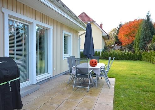 Die Terrasse ist absolut perfekt zum Sonnenbaden und blickdicht. Das Haus wurde so errichtet, dass die wichtigsten Räume immer viel Lichteinfall haben.