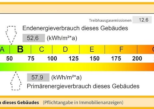 Endenergieverbrauch beträgt 52.60 kwh/(m²*a).
