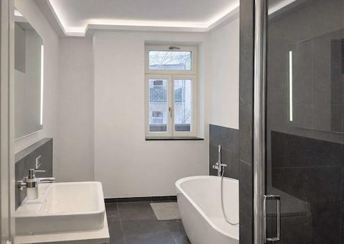 - abgehängte Decken im Flur und im Badezimmer mit direkter und indirekter Beleuchtung