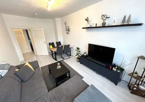 Diese charmante 3-Raum-Wohnung mit einer Wohnfläche von ca. 67 m² liegt im Erdgeschoss des Hauses und überzeugt durch ihre hellen, sanierten und harmonisch gestalteten Räume. Große Fensterflächen sorgen für viel Tageslicht und schaffen eine freundliche, einladende Wohnatmosphäre.