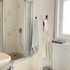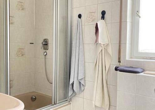 In einem Regal können die persönlichen Dinge sowie Handtücher untergebracht werden.