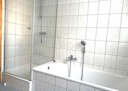 Balkon, Keller, Duschbad, Einbauküche, Laminat, Fliesen