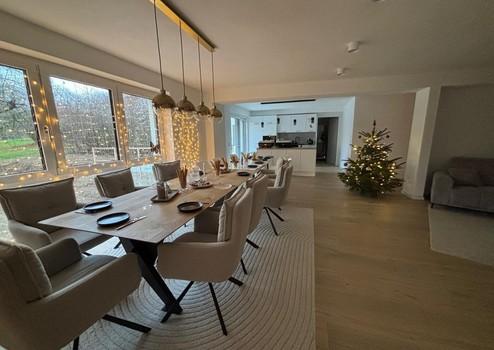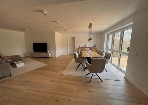 - Großzügiger, lichtdurchfluteter Wohn- und Essbereich mit bodentiefen Fenstern und direktem Zugang zur sonnigen Terrasse (Westseite)