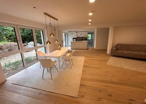 Bei dieser ansprechenden Immobilie im Grünen handelt es sich um einen Erstbezug nach umfassender Kernsanierung. Durch die energetische Modernisierung wird der KfW-70-EE-Standard erreicht (Vollwärmeschutz, Wärmepumpe in Verbindung mit einer PV-Anlage).