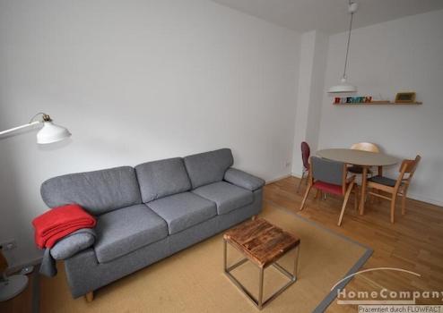 Diese Wohnung wurde sehr geschmackvoll möbliert. Das Schlafzimmer mit Doppelbett, Spiegel und Schrank liegt ruhig zum Hof. Der Vorgelagerte Balkon geht über die gesamte Breite des Hauses. Die voll ausgestattete Küche lässt keine Wünsche offen. Im Wohnzimmer befindet sich eine Couchgarnitur mit einem Tisch. Von hier aus kann man bequem und entspannt das Fernsehprogramm verfolgen. Ein Esstisch mit 4 Stühlen vervollständigt den Wohnbereich. Die Wohnung ist perfekt 1 Person.