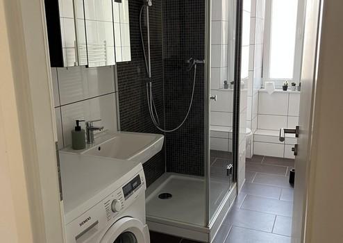 Gepflegtes Bad mit Fenster und Waschmaschinenanschluss