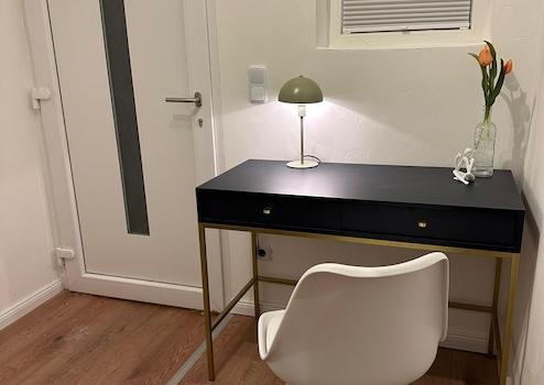 Wir bieten hier eine sehr schöne neue 2 Zimmer Wohnung als Einliegerwohnung in einem Einfamilienhaus in einer beliebten Wohngegend in Ahrensburg bei Hamburg an. Die Wohnung ist gerade vollständig saniert und geschmackvoll möbeliert wurden. Mit "Pütt un Pann" ist die Wohnung komplett ausgestattet. Schönes Geschirr, Töpfe, Smart TV mit Magenta und schnellem Internet. Vom Schlafzimmer geht ein großes En-Suite Bad ab. Eine Waschmaschine steht dort zur Verfügung. Auf der Terrasse mit schönen Outdoormöbeln finden Sie einen Gasgrill. Einfach nur zum Wohlfühlen.