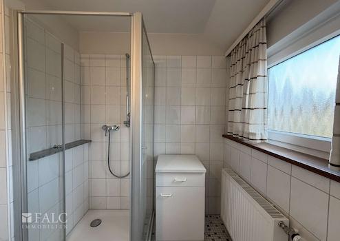 Das Duschbad im Obergeschoss dürfte so aus den 1990ern sein.