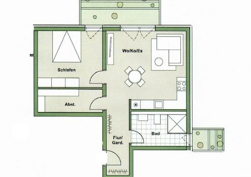 2-Zimmer-Erdgeschosswohnung mit Gartenanteil, 59,3 m²