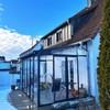 •auf einem Terrassenteil steht ein Kaltwintergarten, der perfekt zum Ambiente des Hauses passt – ein wunderbarer Platz für Frühling, Herbst und lange Abende