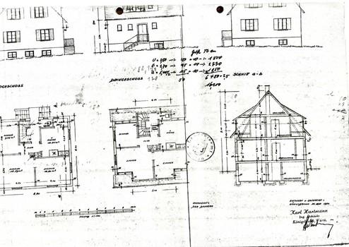 •1. Obergeschoss: separate Toilette, großes Bad mit Eckbadewanne, Dusche und zwei Waschbecken, 2 geräumige Zimmer, plus kleines Ankleidezimmer (Teppichboden; darunter ist der Dielenboden noch vorhanden und kann bei Bedarf wieder hergerichtet werden)