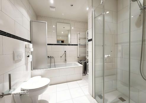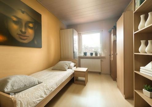 Im Erdgeschoss stehen vier weitere Zimmer zur Verfügung, die flexibel als Kinder-, Gäste- oder Arbeitszimmer genutzt werden können. Eines der Zimmer bietet ebenfalls Zugang zum Balkon. Das modern gestaltete Badezimmer überzeugt mit einer Badewanne und einer separaten Dusche.