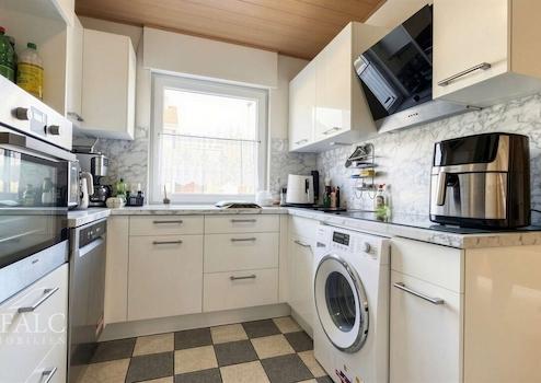 Beim Betreten des Hauses empfängt Sie eine großzügige Diele, die alle Wohnbereiche miteinander verbindet. Die moderne, geräumige Küche bietet viel Platz für kulinarische Entfaltung und lädt zum gemeinsamen Kochen ein.