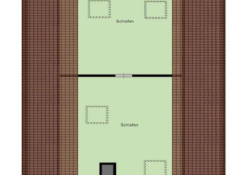 Über eine Treppe erreichen Sie das ausgebaute Dachgeschoss. Dieser Bereich eignet sich hervorragend als Rückzugsort, Studio oder für zwei weitere Schlafzimmer. Die Dachschrägen verleihen dem Raum eine gemütliche, wohnliche Atmosphäre.