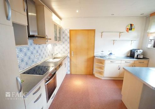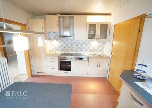 Angrenzend liegt die Küche, die kurze Wege im Alltag ermöglicht. Es ist genug Platz für die praktische Küchenzeile mit zusätzlicher Arbeitsfläche (Essecke). Praktisch ist die Nähe zum Esszimmer, sodass Servieren und Aufräumen unkompliziert bleiben.