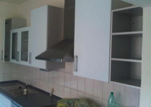 Die Küche hat eine große Einbauküche, in der man auch bequem zu zweit sitzen kann.