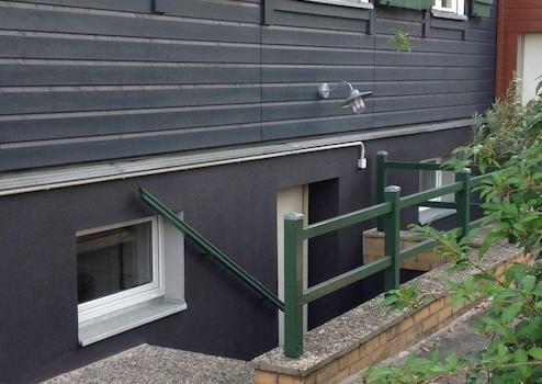 * Feuerschutztür für den Zugang aus dem / in den Garten