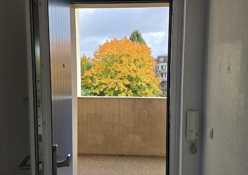 Helles Wohnzimmer mit Balkon, ideal für sonnige Morgenstunden oder entspannte Abende draußen.