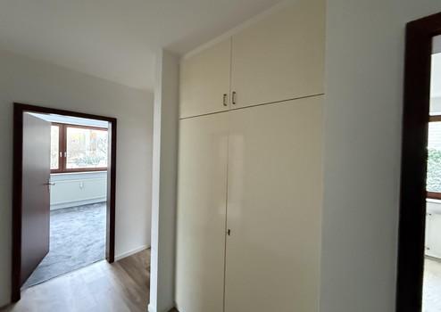 Zwei separate Schlaf- bzw. Kinderzimmer bieten ausreichend Rückzugsmöglichkeiten – ideal für Paare, kleine Familien oder als Wohn-/Arbeitskombination. Der Flur verfügt über einen praktischen Einbauschrank. Die Einbauküche ist vorhanden und kann übernommen werden.