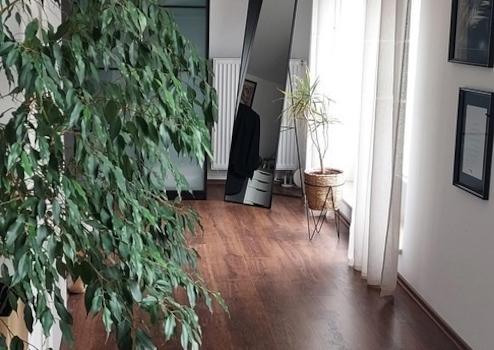 Vom Dachgeschoss, das gegenwärtig als Elternschlafzimmer und Büro genutzt wird, erreichen Sie die große Dachterrasse.