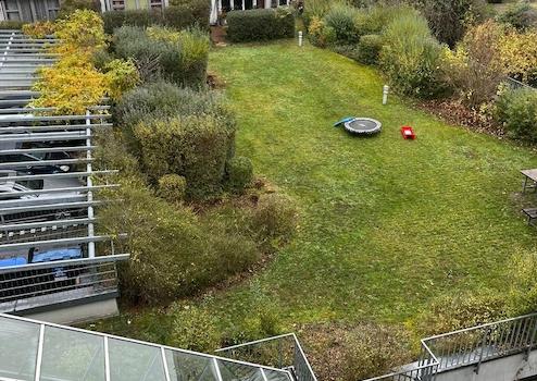 Zur Wohnung gehören außerdem ein großer Gemeinschaftsgarten, die von allen Hausbewohnern genutzt werden kann und zusätzlichen Erholungsraum bieten.