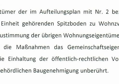 Die Teilungserklärung sieht bereits eine Nutzung des Spitzbodens als Wohnraum vor.