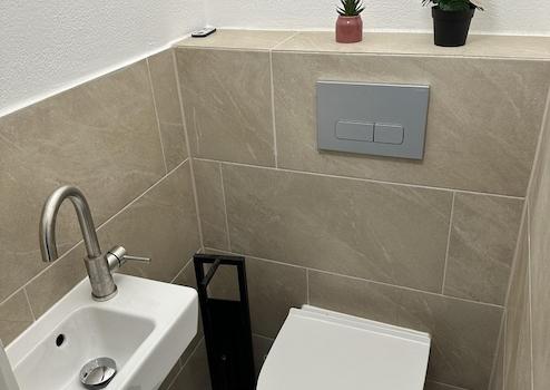 Die WG hat ein schönes helles Bad und ein Gäste WC. In der Küche gibt es genug Platz um zusammen zu Essen, und gemeinsam Zeit zu verbringen.
