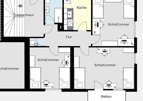 Die Wohnung befindet sich in einem renovierten Haus, wurde mit Fußbodenheizung, neuen Bädern und neuen Küchen ausgestattet. Es befinden sich weitere WGs im Haus, sodass es hier eine super Wohlfühlatmosphäre zustande kommt.