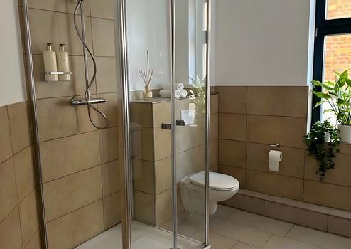 - Tageslichtbad mit Regendusche, WC und Waschbecken