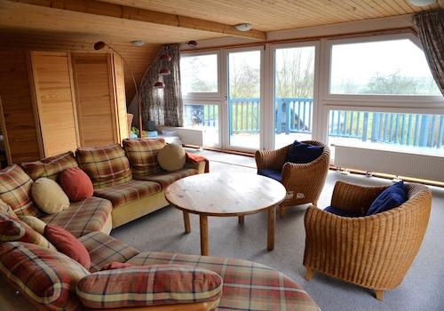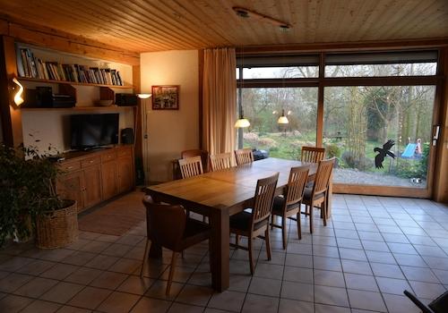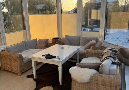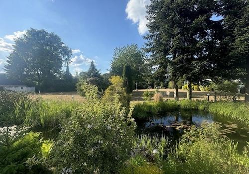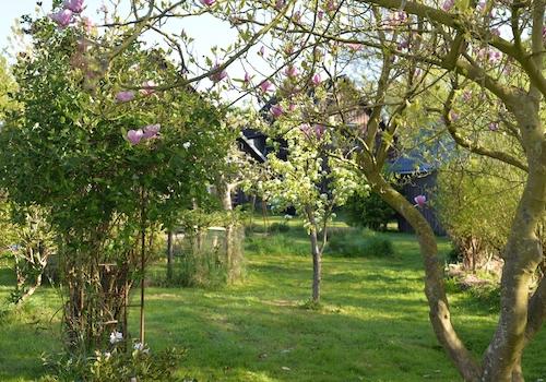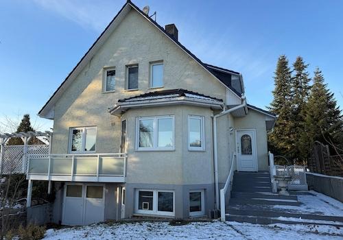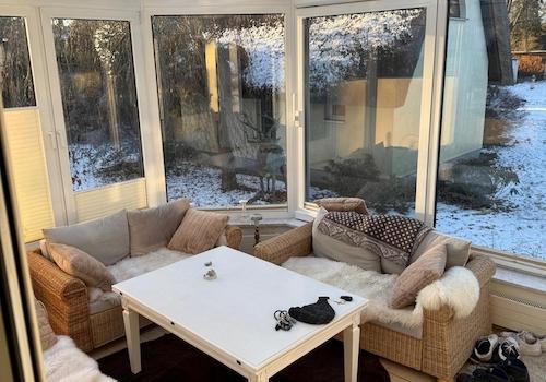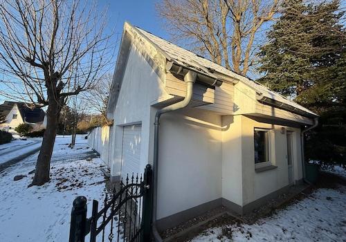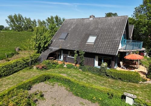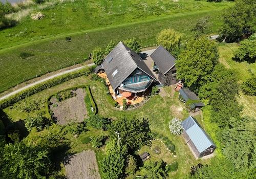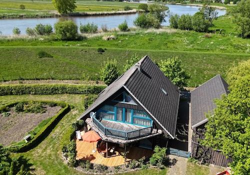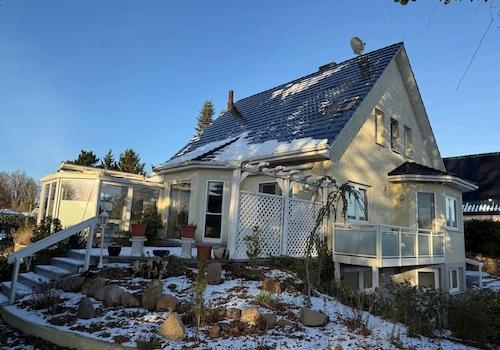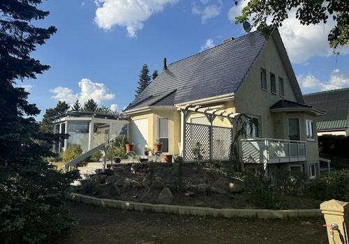 Ökologisch gebautes Holzhaus mit großem Nebengebäude