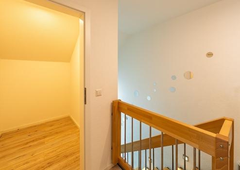 Auch im Obergeschoss setzt sich das harmonische Wohngefühl fort: lichtdurchflutete Zimmer bieten Raum für Familie, Gäste oder Homeoffice, während das großzügige Tageslichtbad mit Wellness-Charakter zum täglichen Rückzugsort wird. Modernste Technik sorgt dabei ganz selbstverständlich für Komfort und Zukunftssicherheit – von energieeffizienter Wärmepumpe und Photovoltaik über Fußbodenheizung, Klimatisierung und Wasserenthärtung bis hin zu Glasfaseranschluss und intelligenter Sicherheitsausstattung.