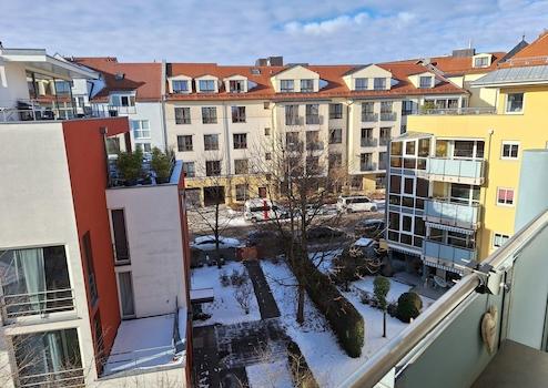 Aus dem Schlafzimmerfenster blickt man auf einen alten Baumbestand und durch die Höhe im 4. Stock über die Dachlandschaft Richtung Isar. Die Emil-Geis-Strasse ist nachts nicht frequentiert. Die ganze Umgebung ist daher ausgesprochen ruhig.