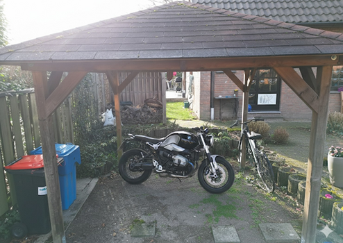 2017: Carport errichtet für Motorräder und Fahrräder und Sichtschutzzaun erneuert