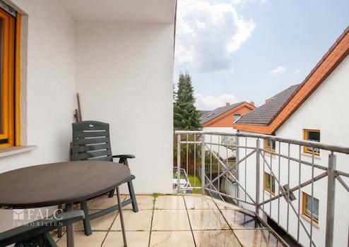 Der Balkon ist mit Terrassenplatten gestaltet.